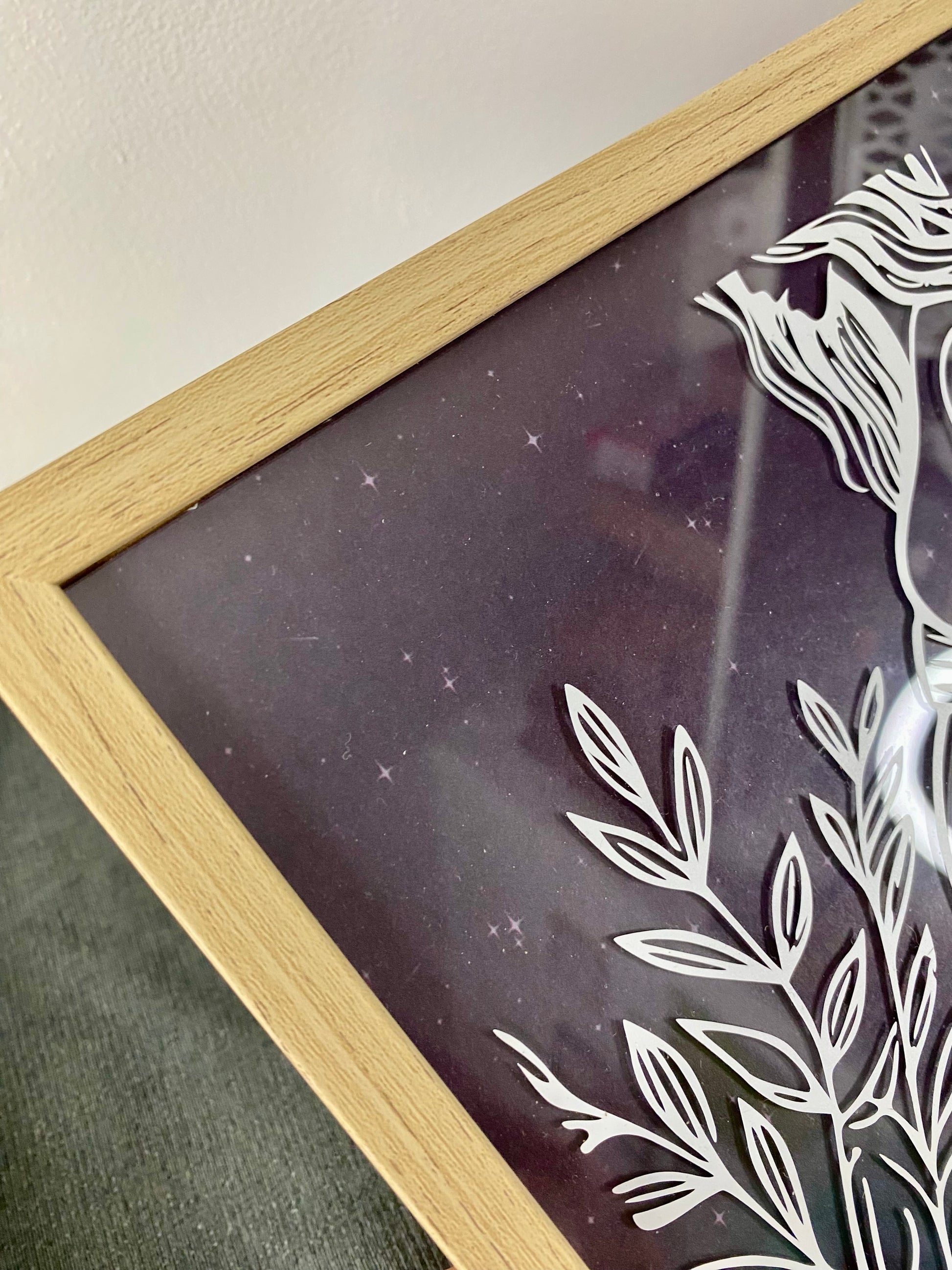 Dimension et couleur du cadre : 20x20cm avec bordures bois